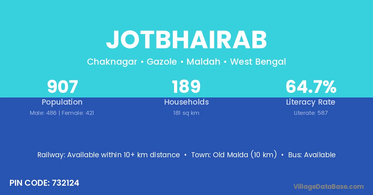 Old Malda (10 km) is the nearest town to Jotbhairab village for major economic activities and is located approximately 10 km away.