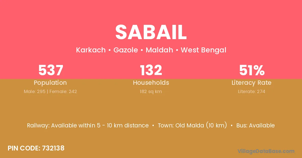 Sabail village is located in the Gazole Subdivision of the Maldah district in West Bengal.