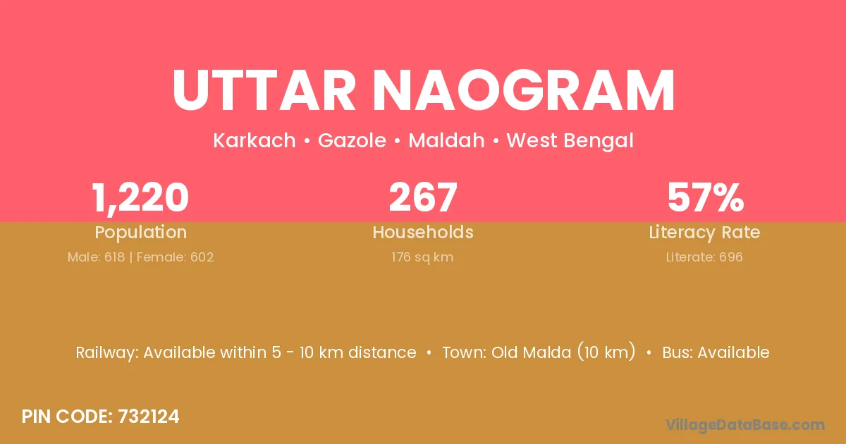 Uttar Naogram village is located in the Gazole Subdivision of the Maldah district in West Bengal.