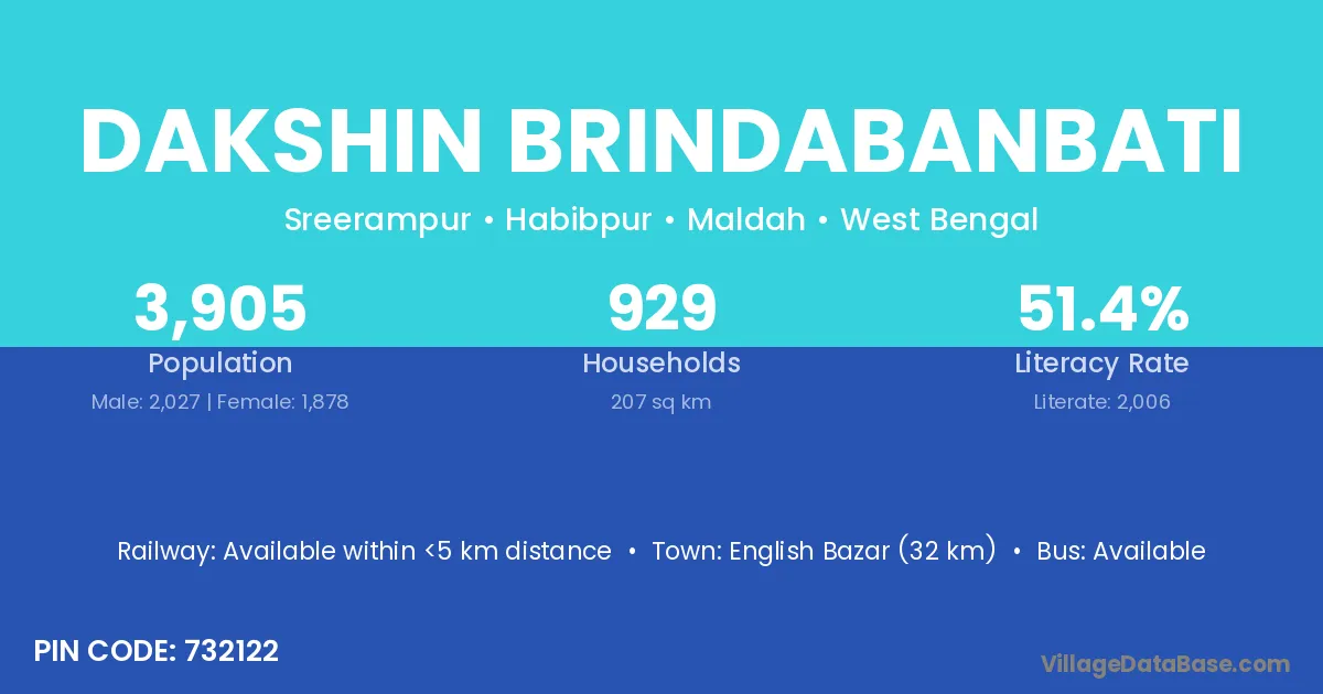 English Bazar (32 km) is the nearest town to Dakshin Brindabanbati village for major economic activities and is located approximately 32 km away.