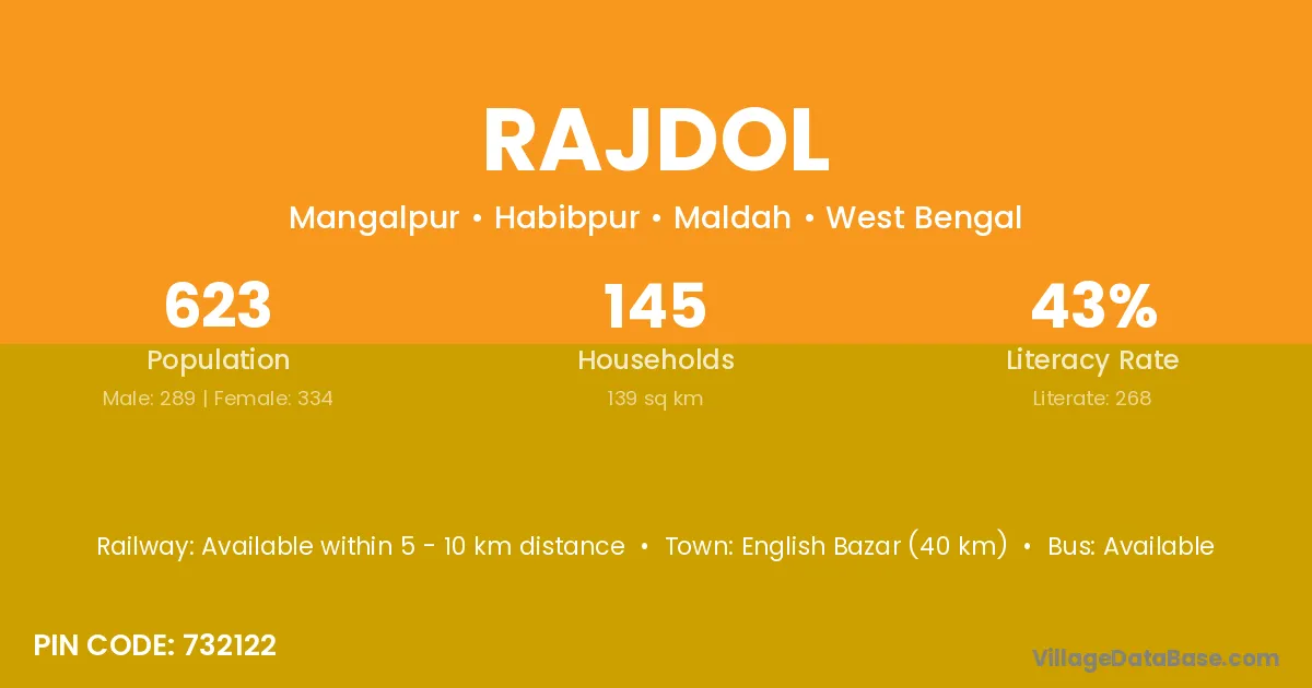 English Bazar (40 km) is the nearest town to Rajdol village for major economic activities and is located approximately 40 km away.