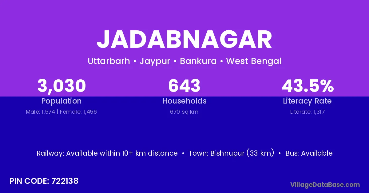 According to Census 2011 information, the village code of Jadabnagar village is 732121.