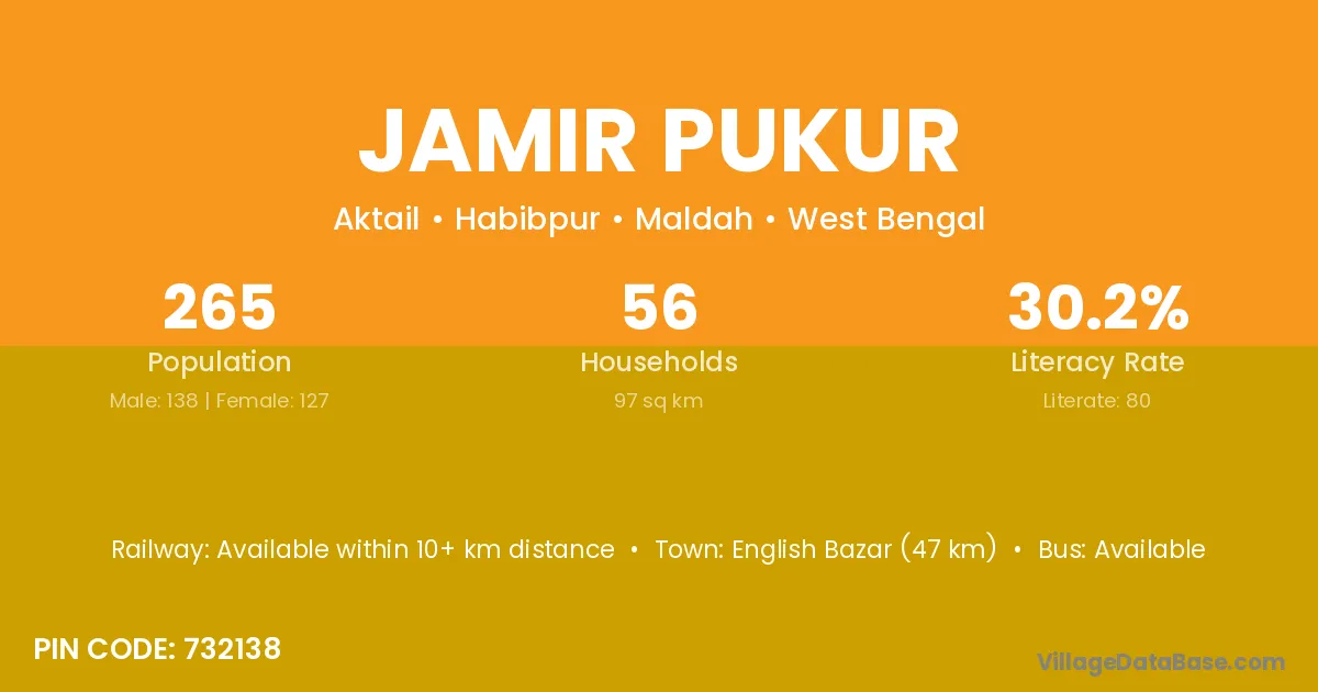 Jamir Pukur village is located in the Habibpur Subdivision of the Maldah district in West Bengal.