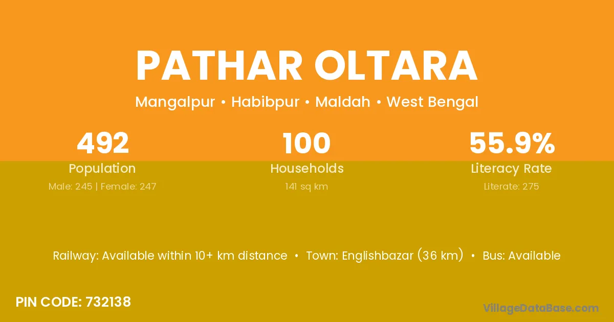 Englishbazar (36 km) is the nearest town to Pathar Oltara village for major economic activities and is located approximately 36 km away.