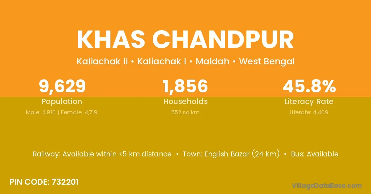 English Bazar (24 km) is the nearest town to Khas Chandpur village for major economic activities and is located approximately 24 km away.