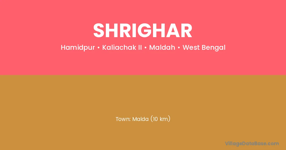 Malda (10 km) is the nearest town to Shrighar village for major economic activities and is located approximately 10 km away.