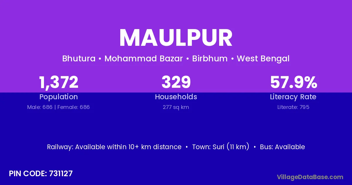 Malda (6 km) is the nearest town to Maulpur village for major economic activities and is located approximately 6 km away.