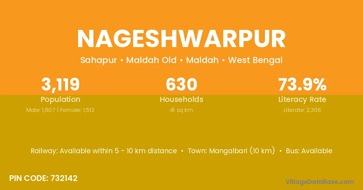 Mangalbari (10 km) is the nearest town to Nageshwarpur village for major economic activities and is located approximately 10 km away.