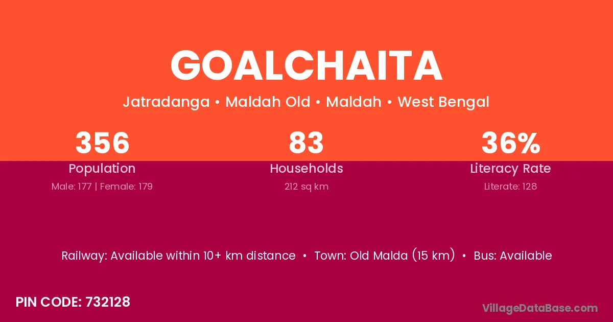 Old Malda (15 km) is the nearest town to Goalchaita village for major economic activities and is located approximately 15 km away.