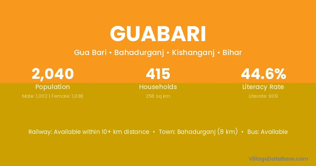 Guabari village is located in the Maldah Old Subdivision of the Maldah district in West Bengal.