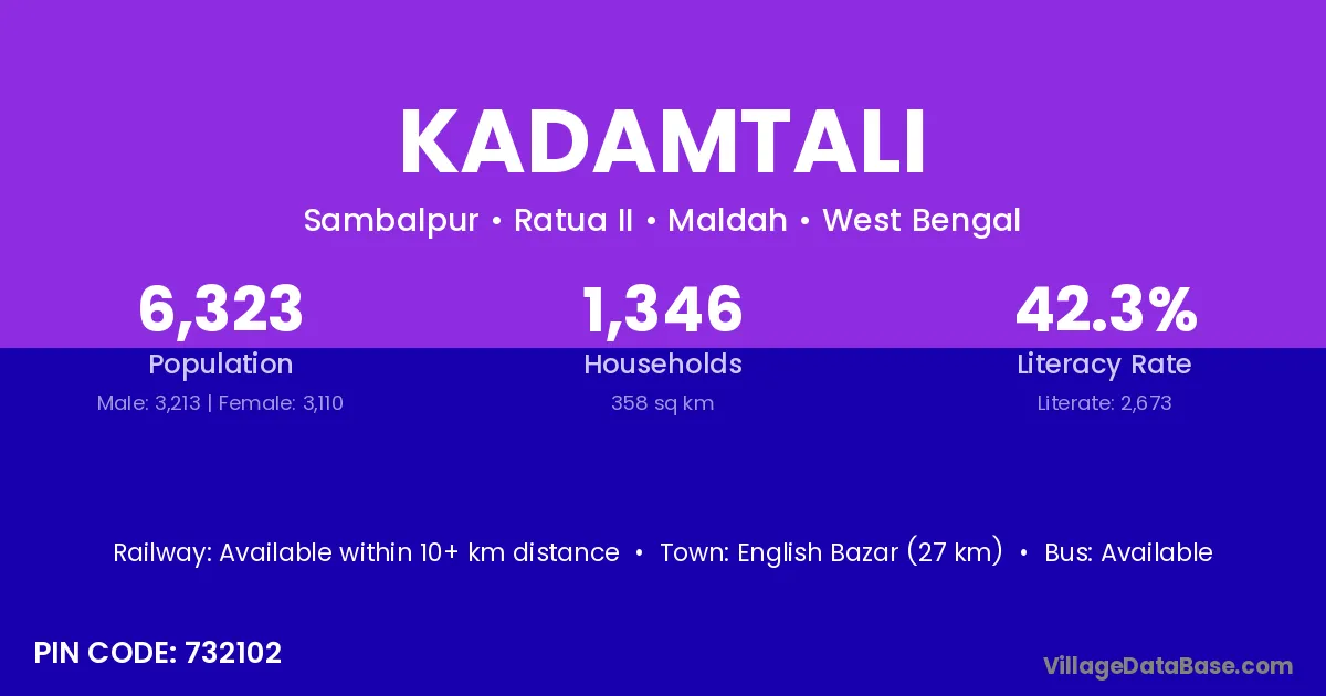 Malda (7 km) is the nearest town to Kadamtali village for major economic activities and is located approximately 7 km away.
