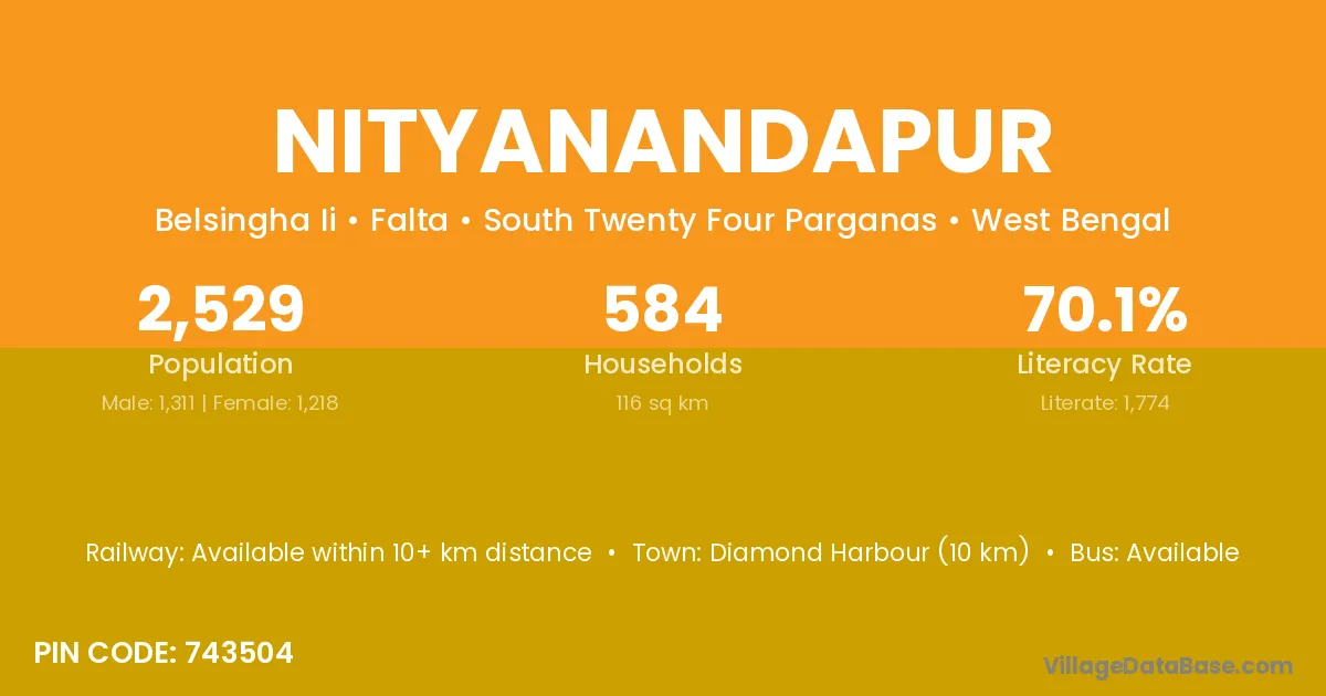 Mangalbari (10 km) is the nearest town to Nityanandapur village for major economic activities and is located approximately 10 km away.