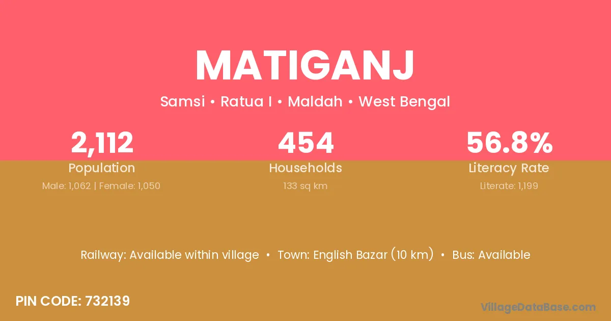 English Bazar (10 km) is the nearest town to Matiganj village for major economic activities and is located approximately 10 km away.