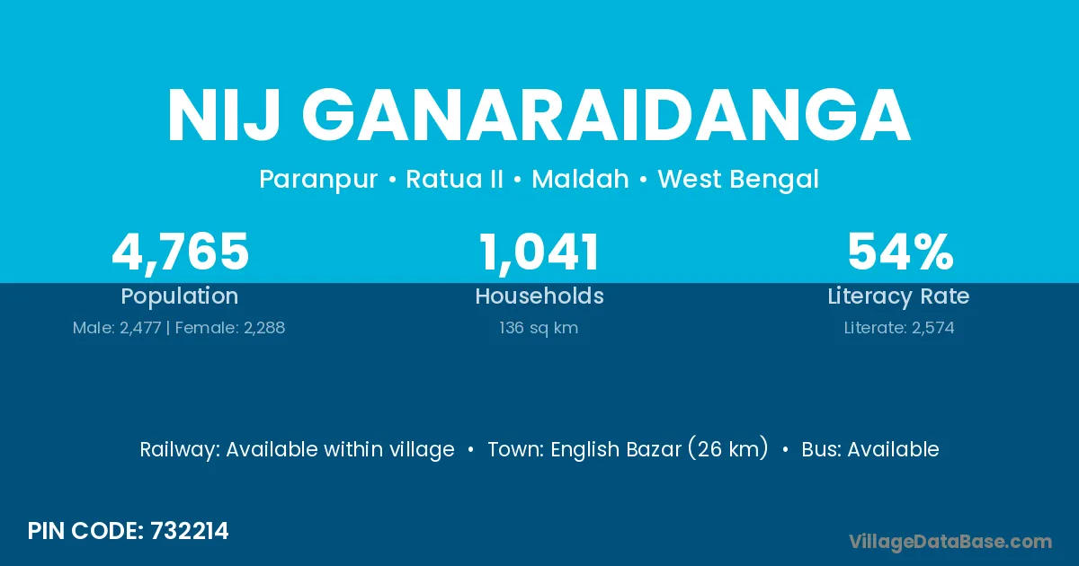 English Bazar (26 km) is the nearest town to Nij Ganaraidanga village for major economic activities and is located approximately 26 km away.