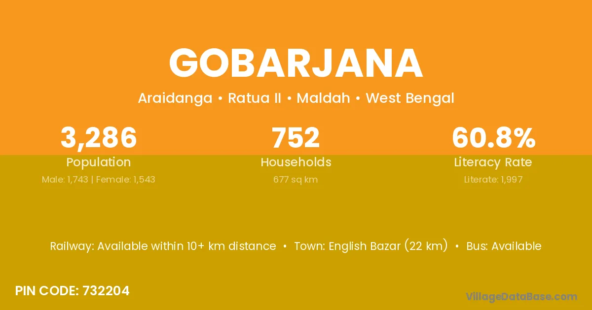 English Bazar (22 km) is the nearest town to Gobarjana village for major economic activities and is located approximately 22 km away.