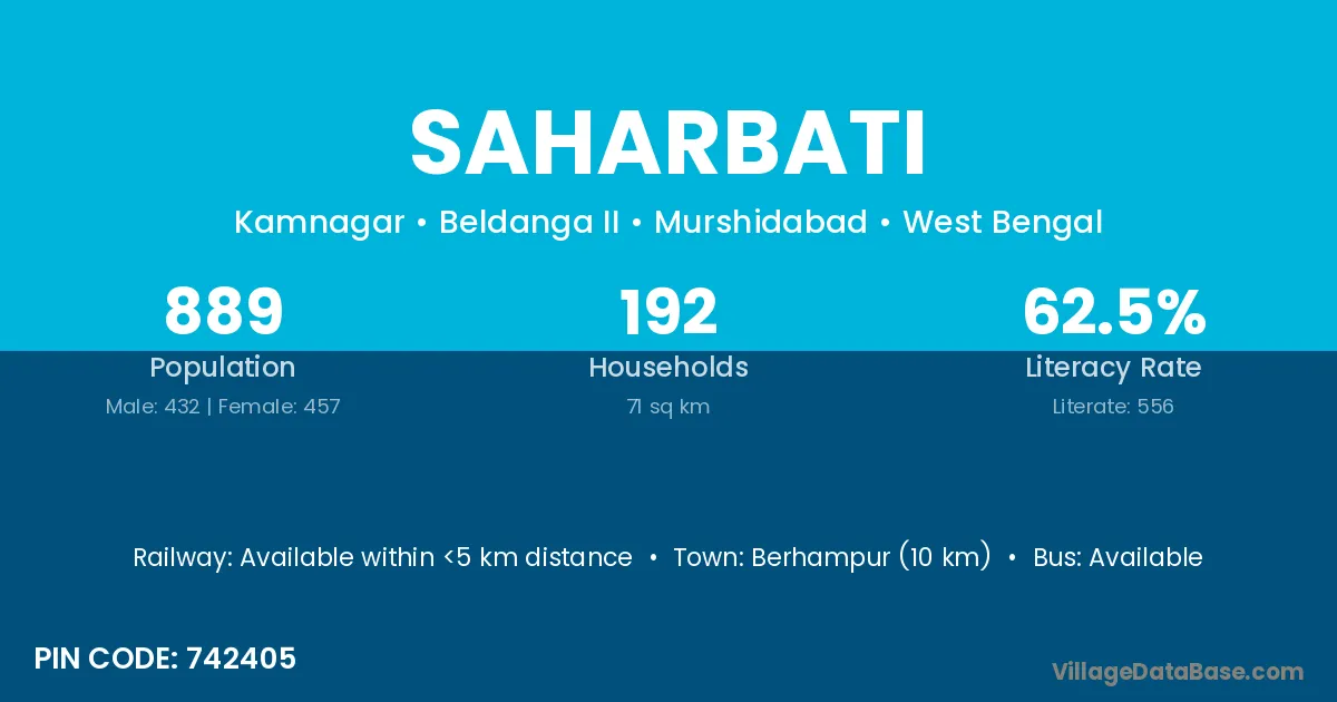 Berhampur (10 km) is the nearest town to Saharbati village for major economic activities and is located approximately 10 km away.