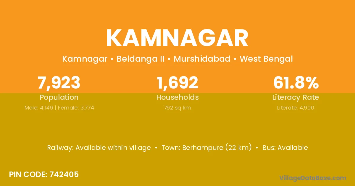 Kamnagar village is located in the Beldanga II Subdivision of the Murshidabad district in West Bengal.