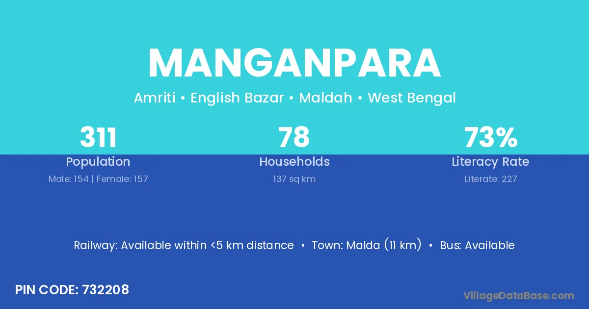 Berhampur (10 km) is the nearest town to Manganpara village for major economic activities and is located approximately 10 km away.