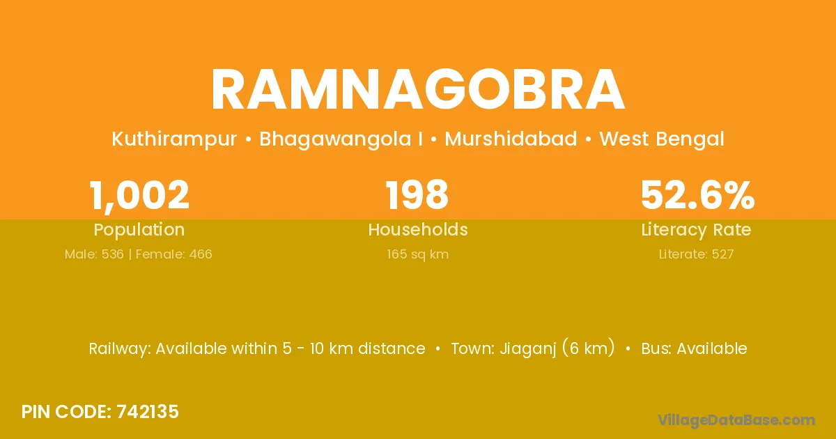Ramnagobra village is located in the Bhagawangola I Subdivision of the Murshidabad district in West Bengal.