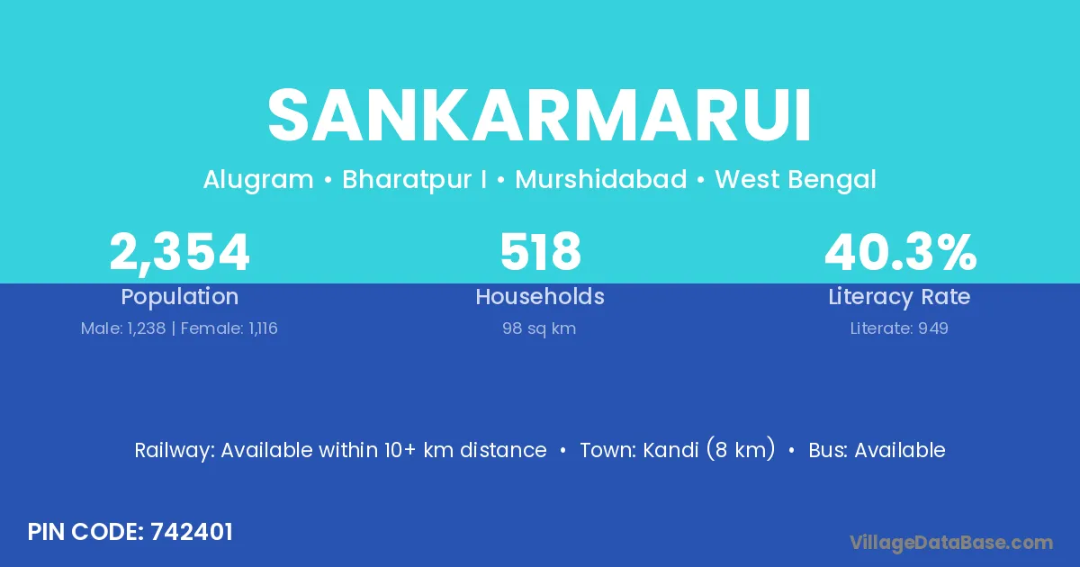 Kandi (8 km) is the nearest town to Sankarmarui village for major economic activities and is located approximately 8 km away.