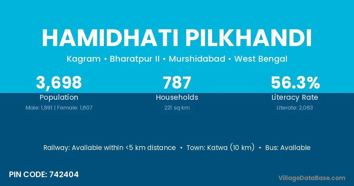 Katwa (10 km) is the nearest town to Hamidhati Pilkhandi village for major economic activities and is located approximately 10 km away.