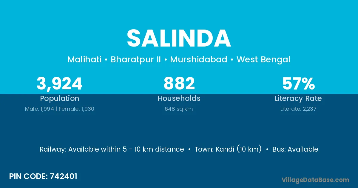 Kandi (10 km) is the nearest town to Salinda village for major economic activities and is located approximately 10 km away.