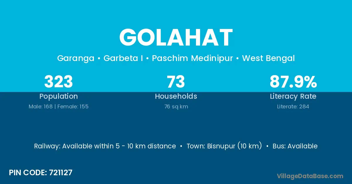 Kandi (10 km) is the nearest town to Golahat village for major economic activities and is located approximately 10 km away.