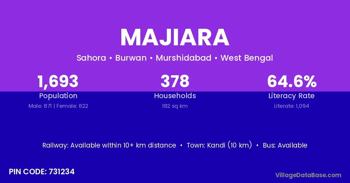 Majiara village is located in the Burwan Subdivision of the Murshidabad district in West Bengal.