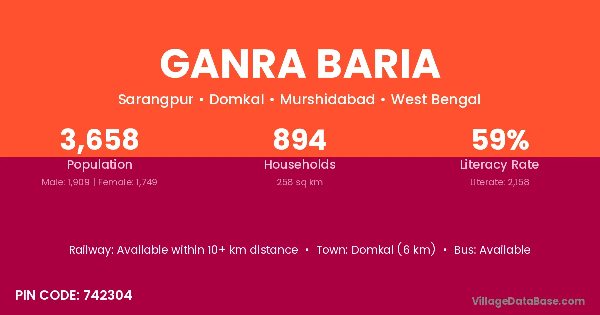 According to Census 2011 information, the village code of Ganra Baria village is 742304.