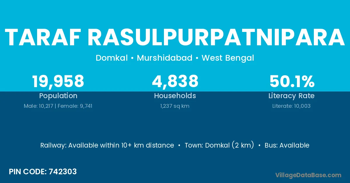 Taraf Rasulpurpatnipara village is located in the Domkal Subdivision of the Murshidabad district in West Bengal .
