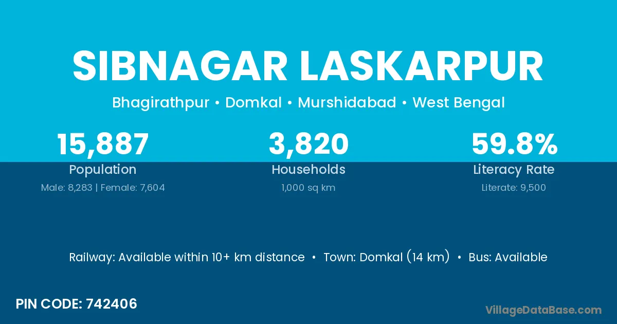Sibnagar Laskarpur village has a total population of 15,887 people, of which 8,283 are males and 7,604 are females.