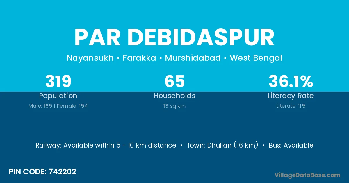 Dhulian (16 km) is the nearest town to Par Debidaspur village for major economic activities and is located approximately 16 km away.