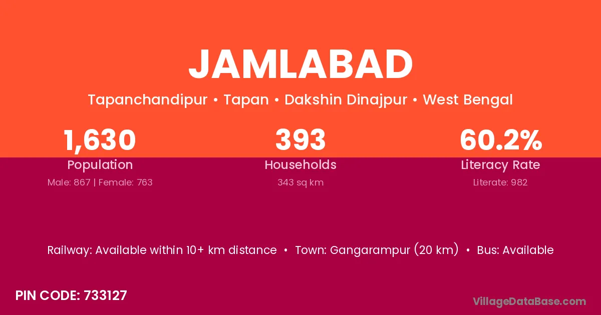 Berhampore (30 km) is the nearest town to Jamlabad village for major economic activities and is located approximately 30 km away.