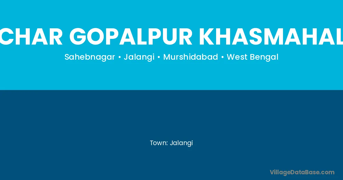 Char Gopalpur Khasmahal village is located in the Jalangi Subdivision of the Murshidabad district in West Bengal.