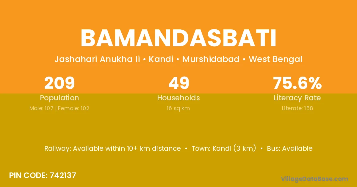 Kandi (3 km) is the nearest town to Bamandasbati village for major economic activities and is located approximately 3 km away.