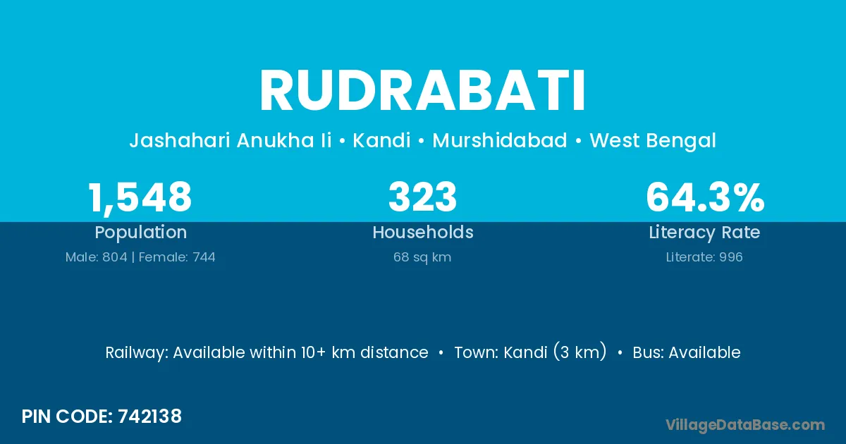 Kandi (3 km) is the nearest town to Rudrabati village for major economic activities and is located approximately 3 km away.