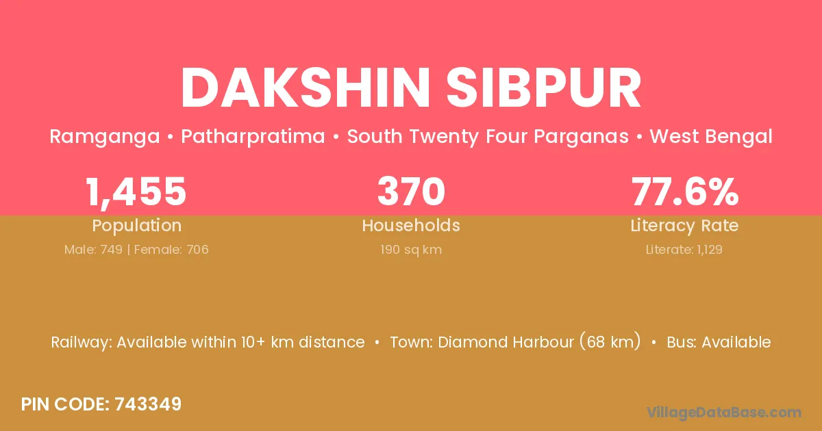 Dakshin Sibpur village has a total population of 405 people, of which 202 are males and 203 are females.