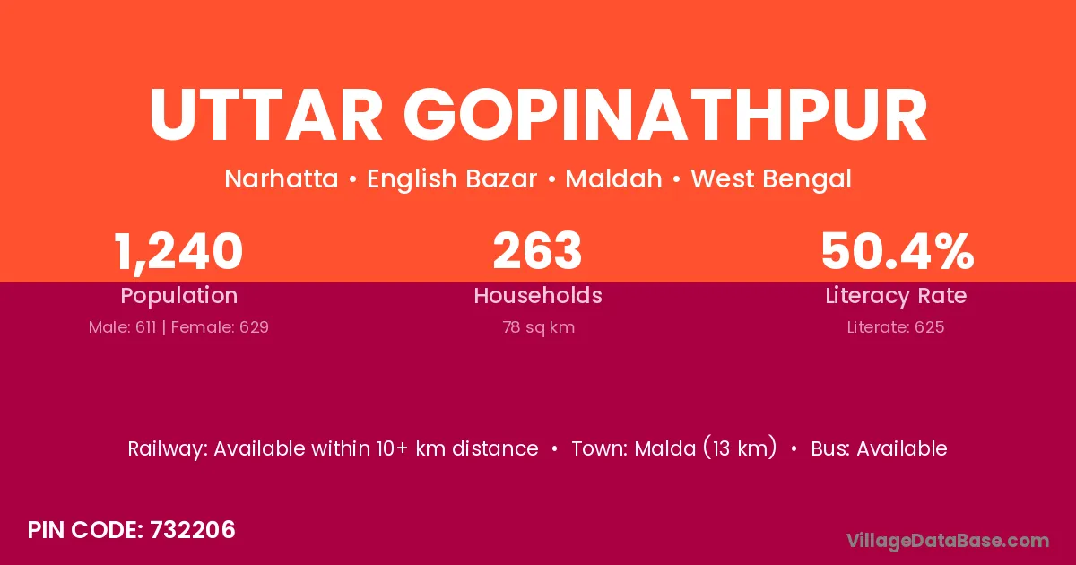 Uttar Gopinathpur village has a total population of 3,701 people, of which 1,882 are males and 1,819 are females.