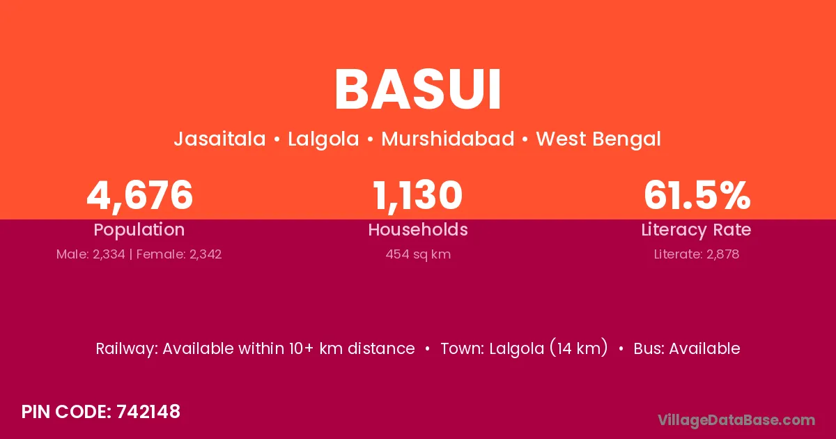 Basui village is located in the Lalgola Subdivision of the Murshidabad district in West Bengal.