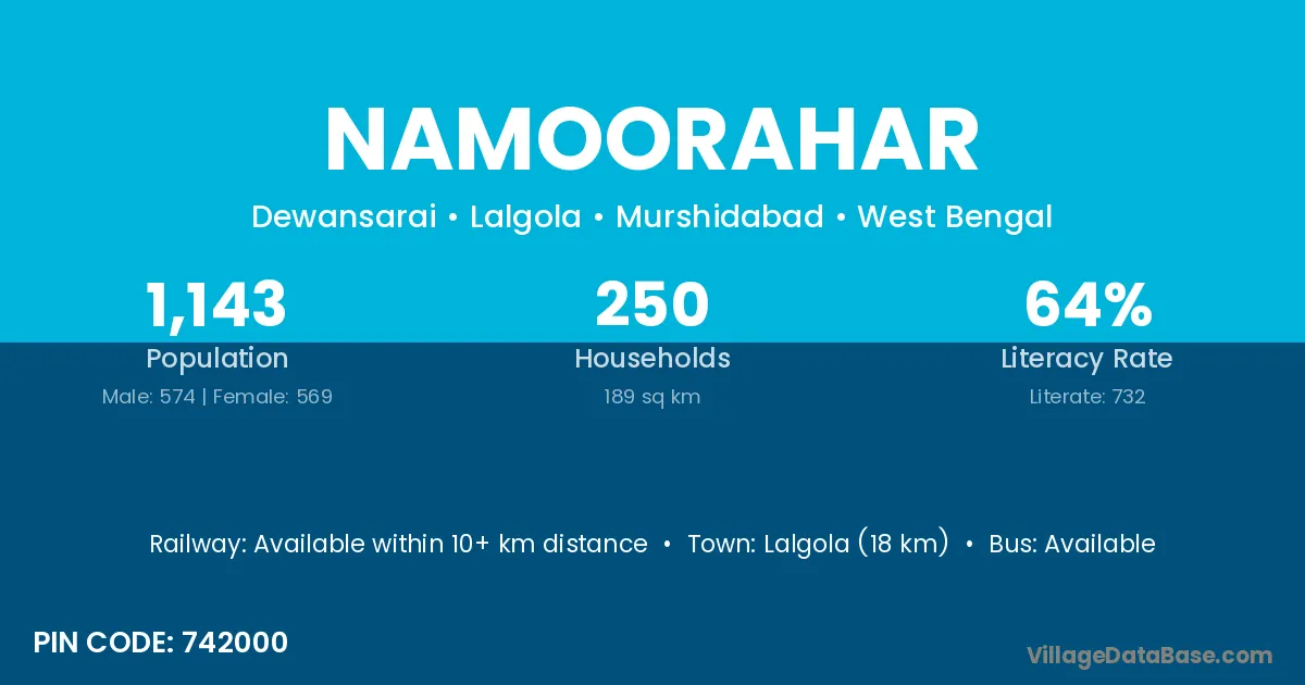 Lalgola (18 km) is the nearest town to Namoorahar village for major economic activities and is located approximately 18 km away.