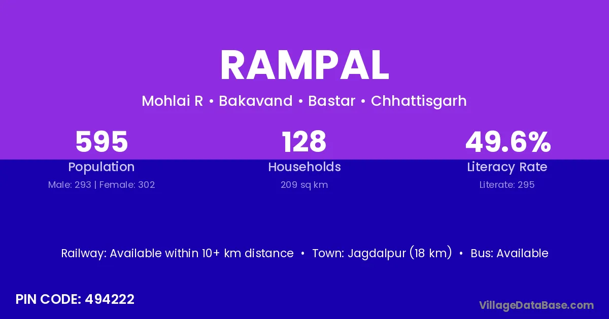 According to Census 2011 information, the village code of Rampal village is 742000.
