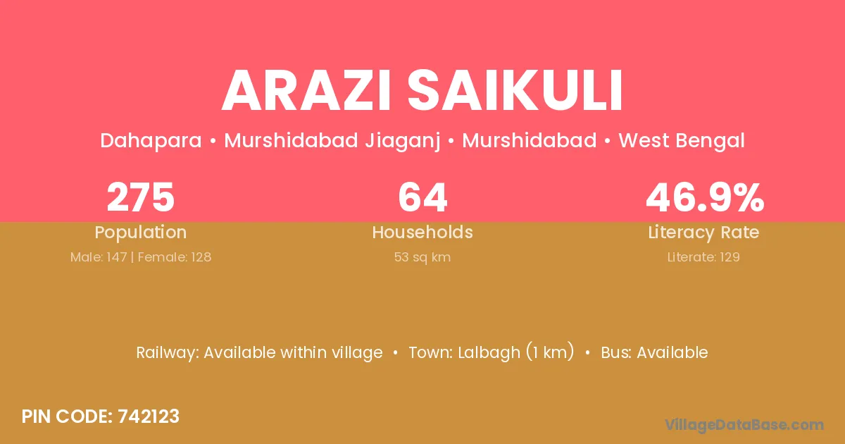 Arazi Saikuli village is located in the Murshidabad Jiaganj Subdivision of the Murshidabad district in West Bengal.