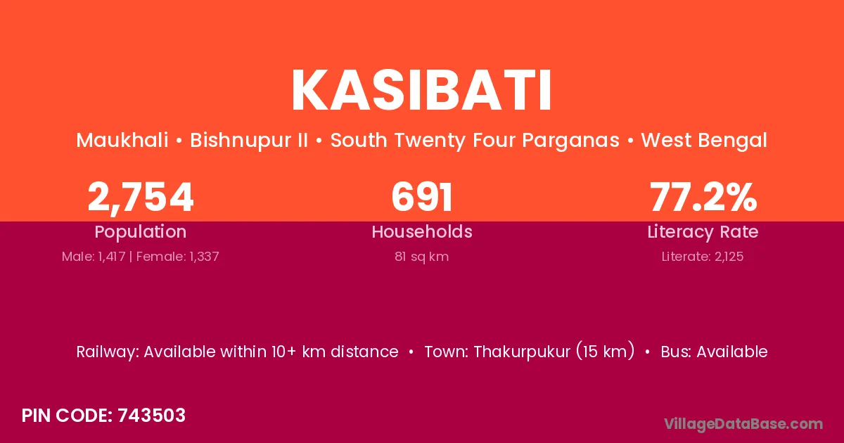 Lalbagh (10 km) is the nearest town to Kasibati village for major economic activities and is located approximately 10 km away.