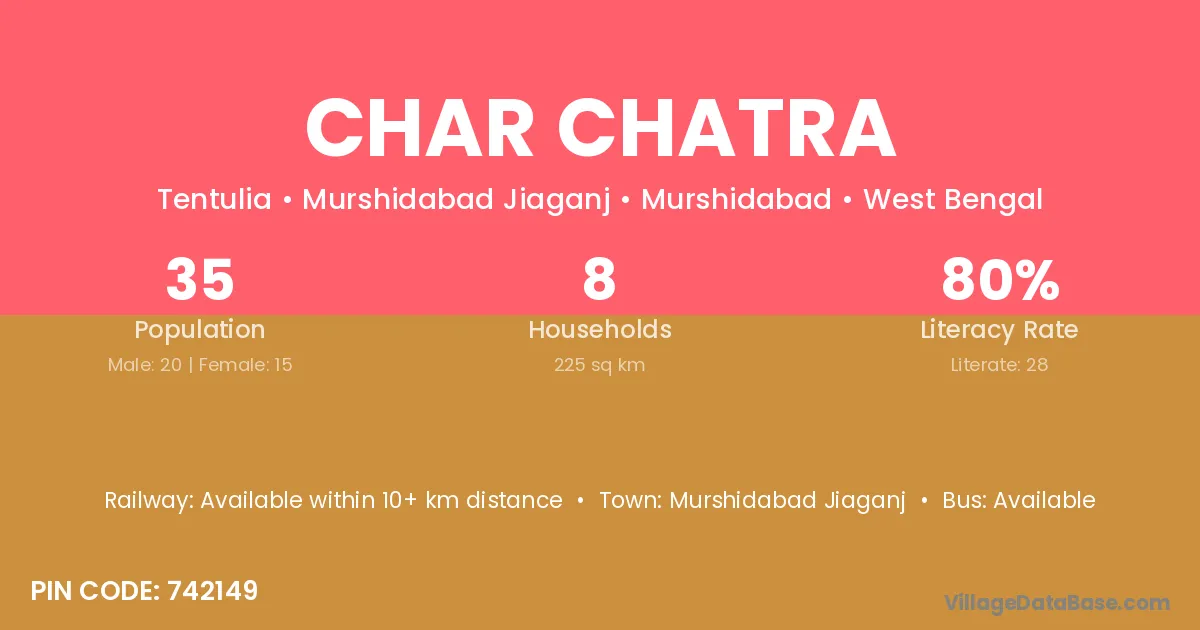 Char Chatra village has a total population of 35 people, of which 20 are males and 15 are females.