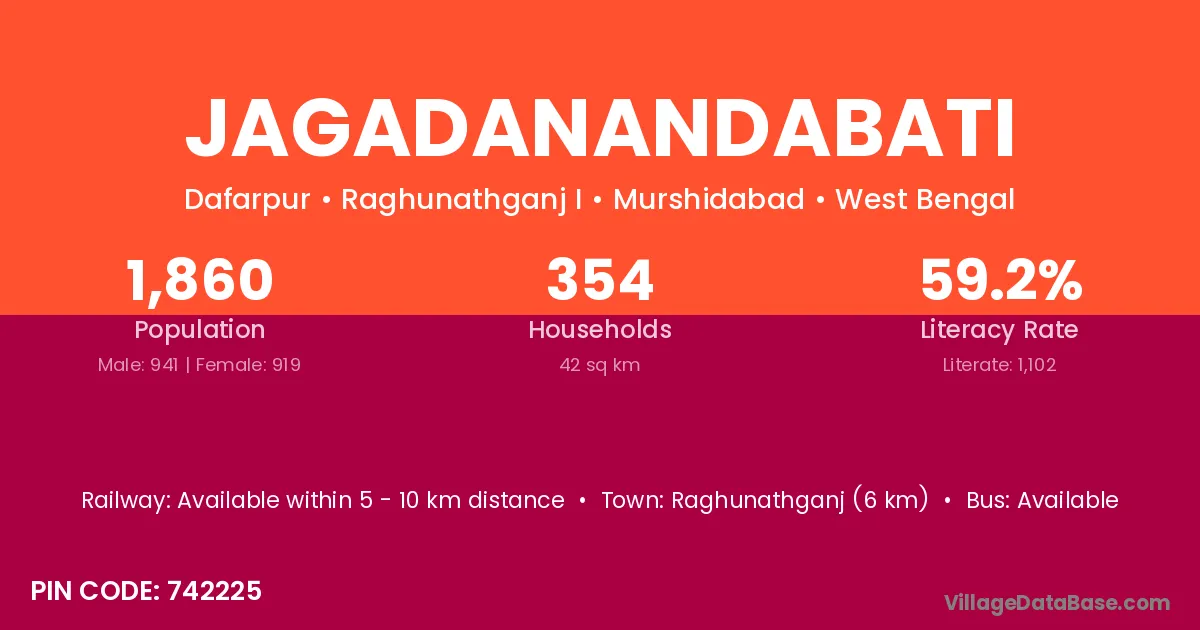 Raghunathganj (6 km) is the nearest town to Jagadanandabati village for major economic activities and is located approximately 6 km away.