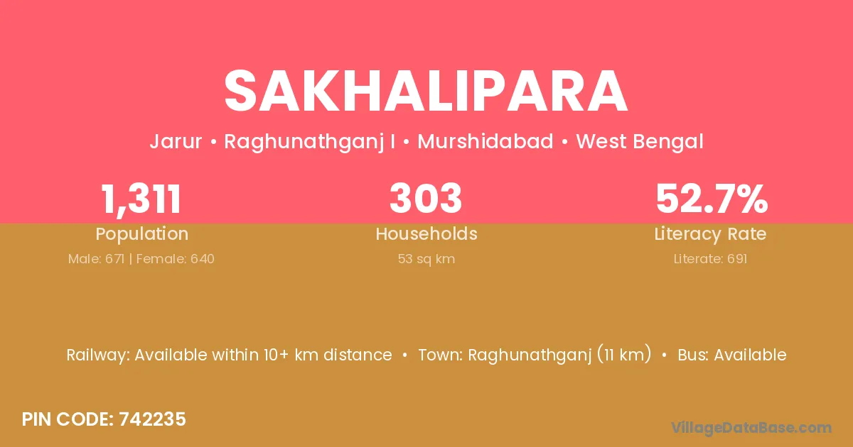Raghunathganj (11 km) is the nearest town to Sakhalipara village for major economic activities and is located approximately 11 km away.