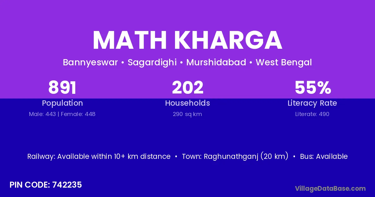 Raghunathganj (20 km) is the nearest town to Math Kharga village for major economic activities and is located approximately 20 km away.