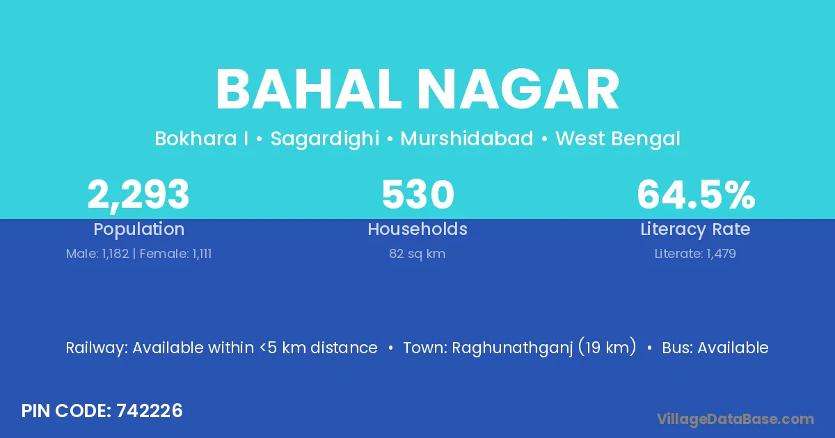 Raghunathganj (19 km) is the nearest town to Bahal Nagar village for major economic activities and is located approximately 19 km away.