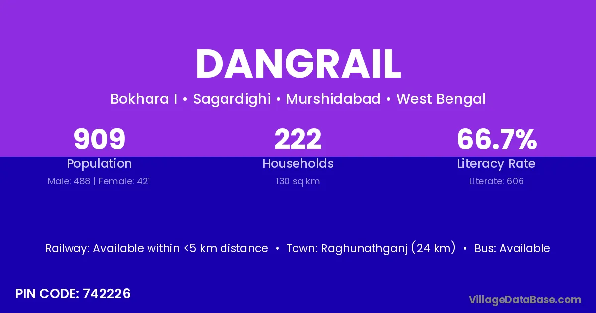 Raghunathganj (24 km) is the nearest town to Dangrail village for major economic activities and is located approximately 24 km away.