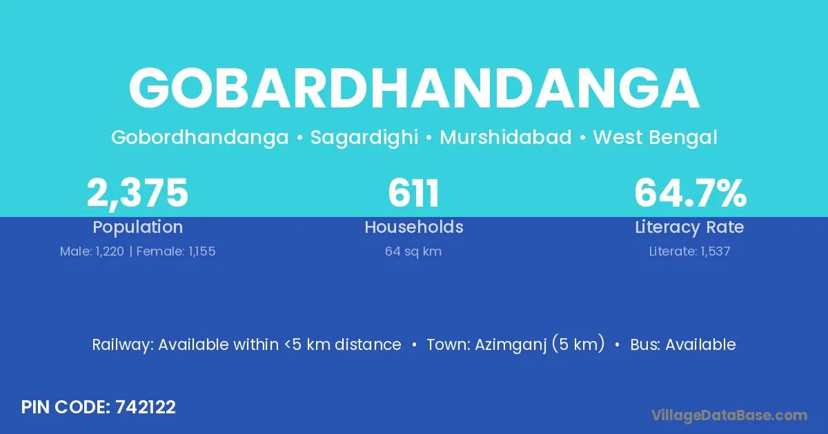Azimganj (5 km) is the nearest town to Gobardhandanga village for major economic activities and is located approximately 5 km away.